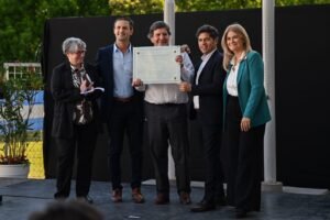 En este marco, Mantegazza agradeció profundamente al ministro saliente, Alberto Sileoni, por la “gran tarea que llevó adelante con planificación estratégica, con dedicación, con esfuerzo” que dejó en el sistema educativo, especialmente en San Vicente, donde su gestión impulsó nuevas obras, ampliaciones y edificios que transformaron el presente y el futuro de miles de estudiantes.