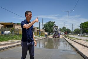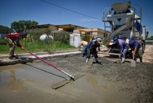 Entre las tareas realizadas se destaca el avance de la pavimentación de la calle Sargento Cabral en Domselaar, donde se llevó adelante el volcado de hormigón sobre la calzada, una etapa clave que mejora la seguridad vial y optimiza la circulación en la zona.
