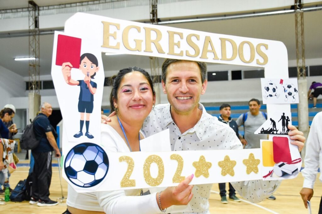 Acompañado por el director de la Escuela Municipal de Árbitro e integrante de AFA y FIFA, Yael Falcon Pérez, así como el Director de Deportes, Cristian Gómez, el intendente destacó el esfuerzo y dedicación del equipo docente, especialmente resaltando la labor de Pérez.