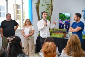 En el Salón Gaetani del Palacio Municipal, el intendente Nicolás Mantegazza encabezó una nueva entrega de plantines correspondientes al Programa Huerta Bonaerense, acompañado por Juan Amador Velásquez, director de Producción para la Agricultura Familiar, Nicolás Bento, director de Cooperativas Agropecuarias y vecinos que participan activamente de esta iniciativa.