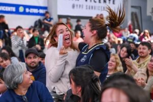 “Este es un proyecto particular que el Municipio de San Vicente ha puesto 200 lotes en un trabajo en conjunto con la Provincia de Buenos Aires, con nuestro gobernador, Axel Kicillof, porque esta obra no ha parado a lo largo de este año y medio, que actualmente está en la etapa final, con lo cual en pocos meses se va a estar terminando para que ustedes y sus familias puedan disfrutar”.